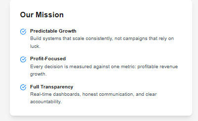 Our team builds predictable growth systems that multiply ROI through precision targeting and funnel optimization.