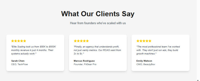 Elite Scaling isn't just another marketing agency. We're growth engineers who build systems that turn marketing spend into predictable profit.