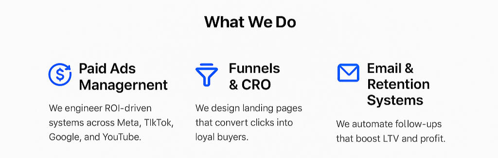 We don’t just run ads, we engineer systems that grow brands with precision, speed, and profit.